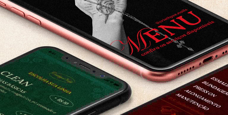 Para a construção visual, optei por tons que remetem à realeza, contrastando com toques de ouro e prata para enriquecer a narrativa de unhas duráveis, luxuosas e feitas à mão feitas por Cristhyeé. Da mesma forma, na tipografia e composição assinei com técnicas contemporâneas de design para manter a essência jovem na estética atemporal.