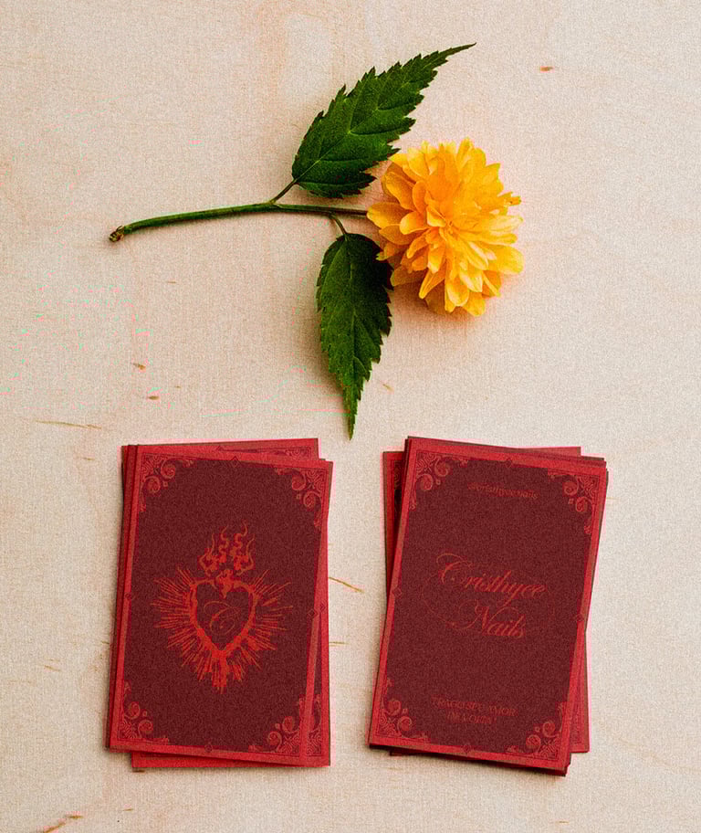 Visual Identity developed for the work of "cristhyeé nails". Specialized in nail art, she promises to bring your love back with magic in the tip of her fingers. The main inspiration for this project are antique & religious figures of latin aesthetic.