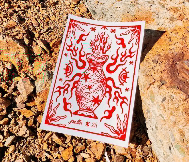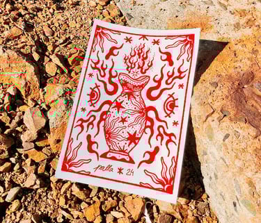 Using vibrant colours, bold compositions and strong lines, my graphic research points to analog printing as a form of resistance in a world incresingly dominated by AI, celebrating artistic resistance and the freedom to create for one's own sake, subverting the rules of Design and commercial Art.